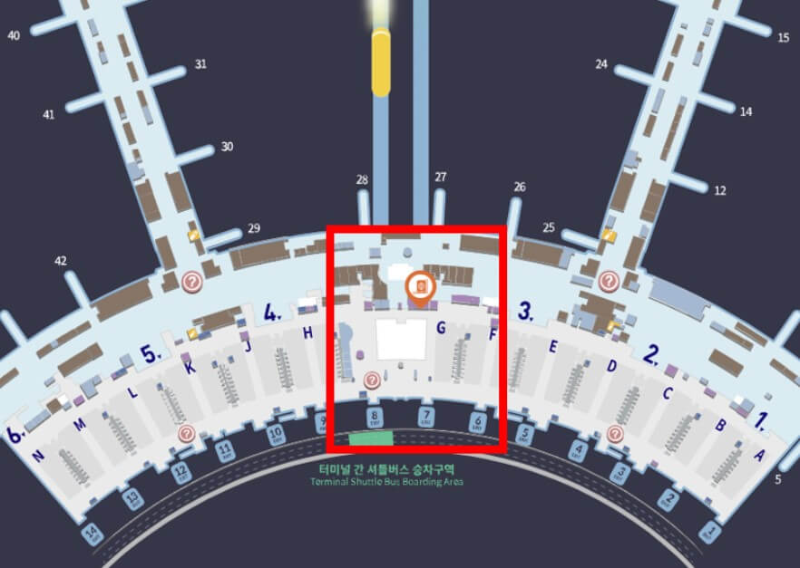- 위치 : 인천광역시 중구 공항로 272 인천국제공항 제1여객터미널 3층 G체크인카운터 근처