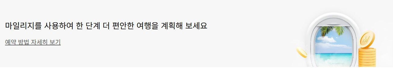 여러분의 다음 여행이 더욱 특별해질 수 있습니다. 마일리지로 즐기는 프리미엄 여행, 지금 바로 계획해보는 건 어떨까요?