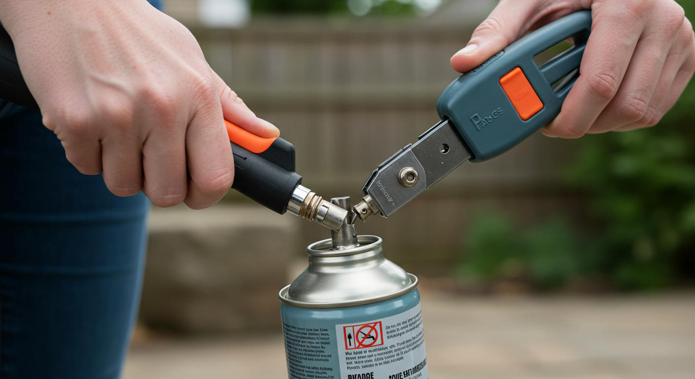 - 가스 제거기의 사용 설명서에 따라 부탄가스통을 제거기에 연결합니다.