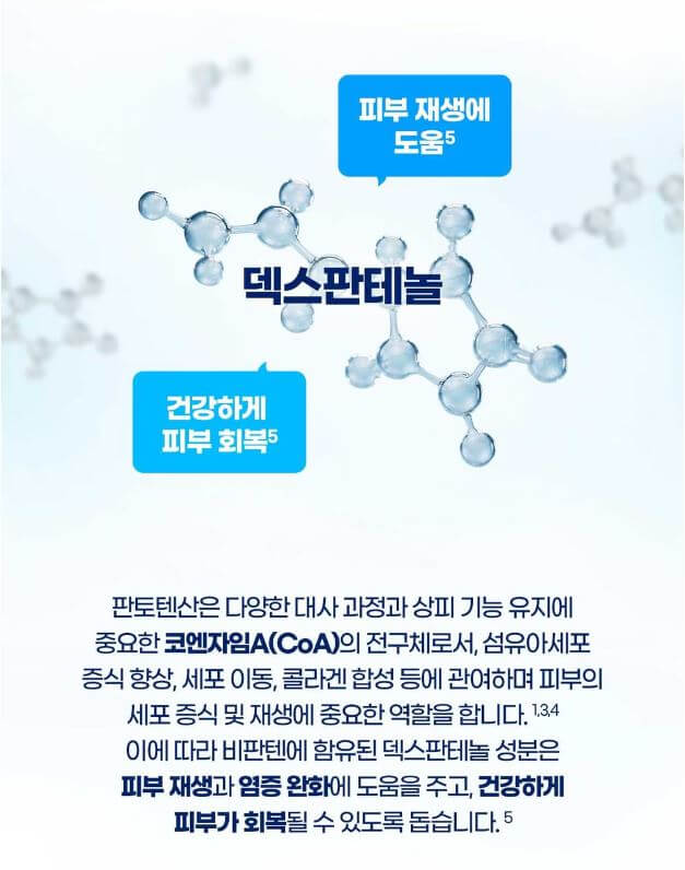 비판텐 연고의 주성분은 덱스판테놀(덱스판테놀)입니다. 덱스판테놀은 피부에 흡수되어 프로비타민 B5로 변환되어 피부 재생을 촉진하고 보습 효과를 나타냅니다.