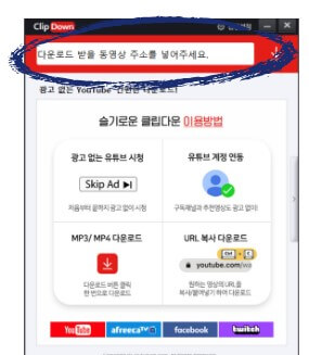 5. 유튜브 주소를 브라우저에섭 복사하여 클립다운 프로그램의 검색창에 붙여넣는 방식으로 원하는 영상을 찾아 추출할 수 있습니다.