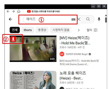 3. 검색 결과에서 원하는 영상이나 음악을 찾았다면, 클립다운이 제공하는 3가지 방법 중 가장 편리한 방법을 선택하여 음원을 추출할 수 있습니다.