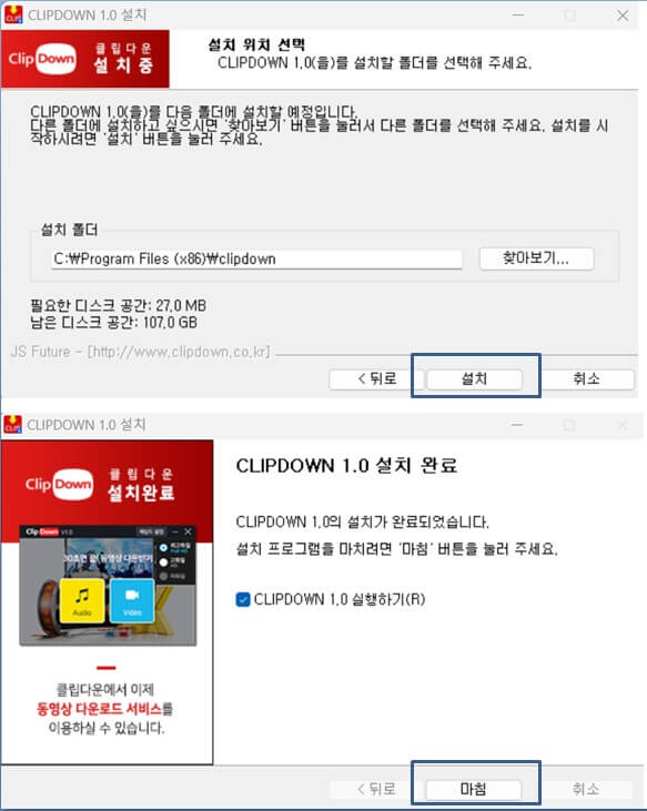 5. 마침 버튼을 누르면 클립다운 설치가 완료됩니다.