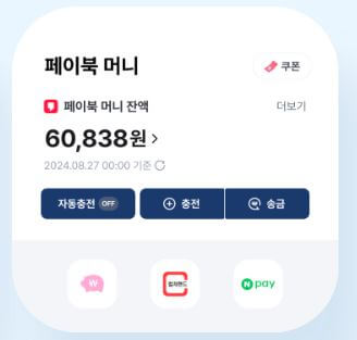 - 페이북: 페이북 머니로 전환 후 계좌 이체를 통해 현금화 가능합니다.