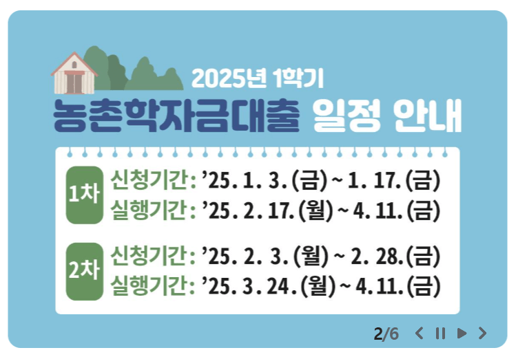 - 농촌출신대학생 학자금융자: 농촌 지역 학생들에게 무이자로 제공.